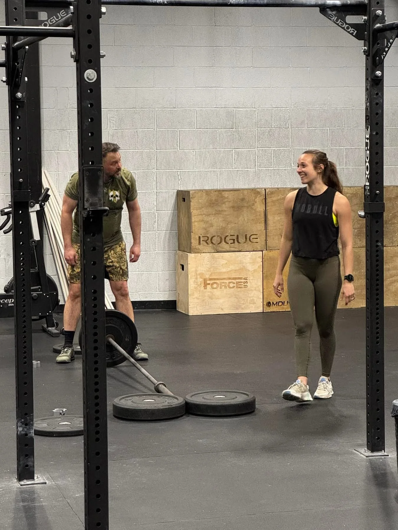 Being part of this incredible community and collaborating with like-minded individuals has awakened a new passion within me. Witnessing smiles, fist bumps, and a sense of pride and accomplishment during personal records or overcoming perceived limitations brings me immense joy. This perspective motivated me to become a coach at CrossFit Vint Hill. Acknowledging that we are all on unique journeys with different abilities and struggles, I am fervent about helping others navigate injuries, find a scale, and seeing people ‘investing” in themselves.